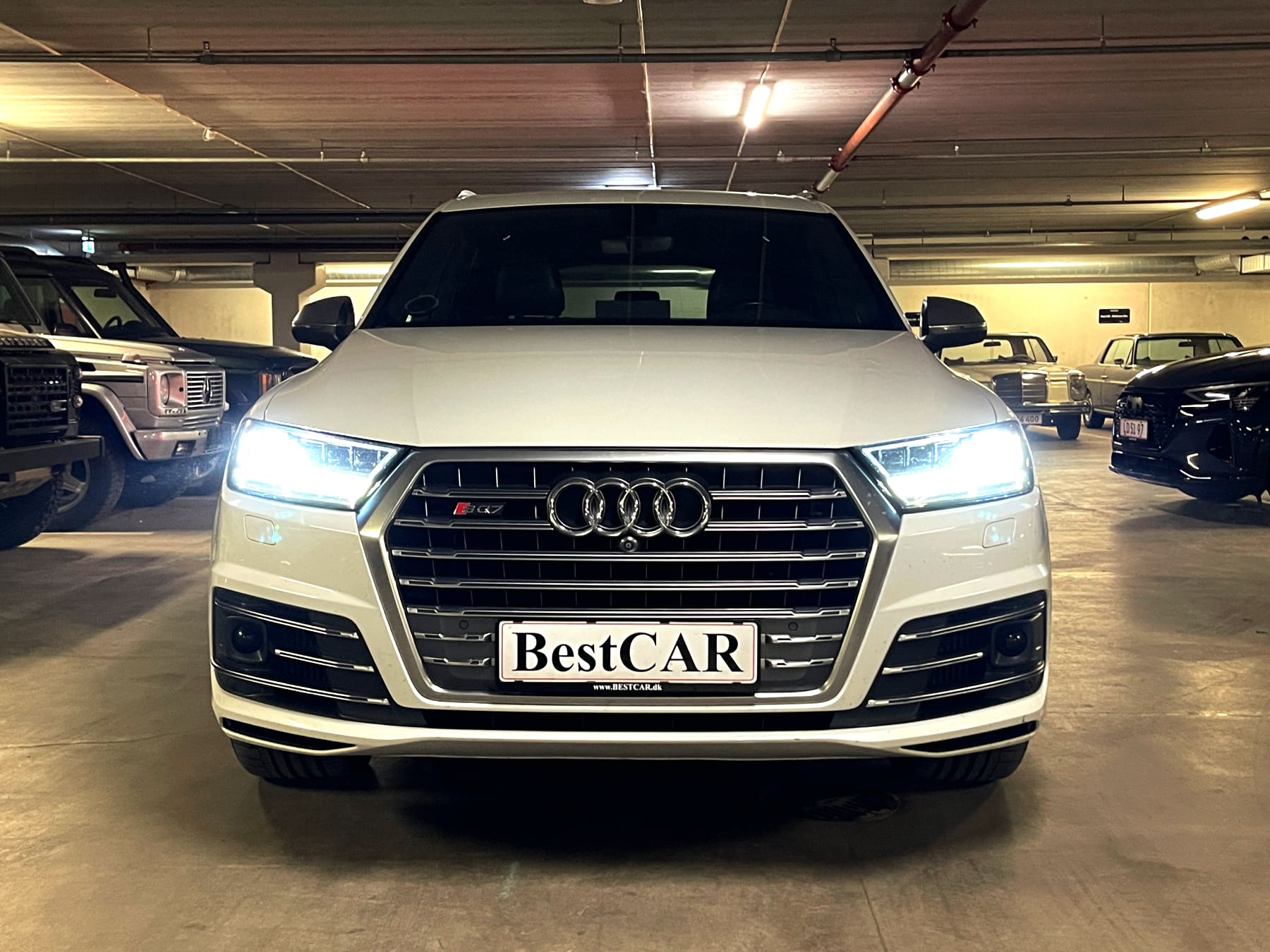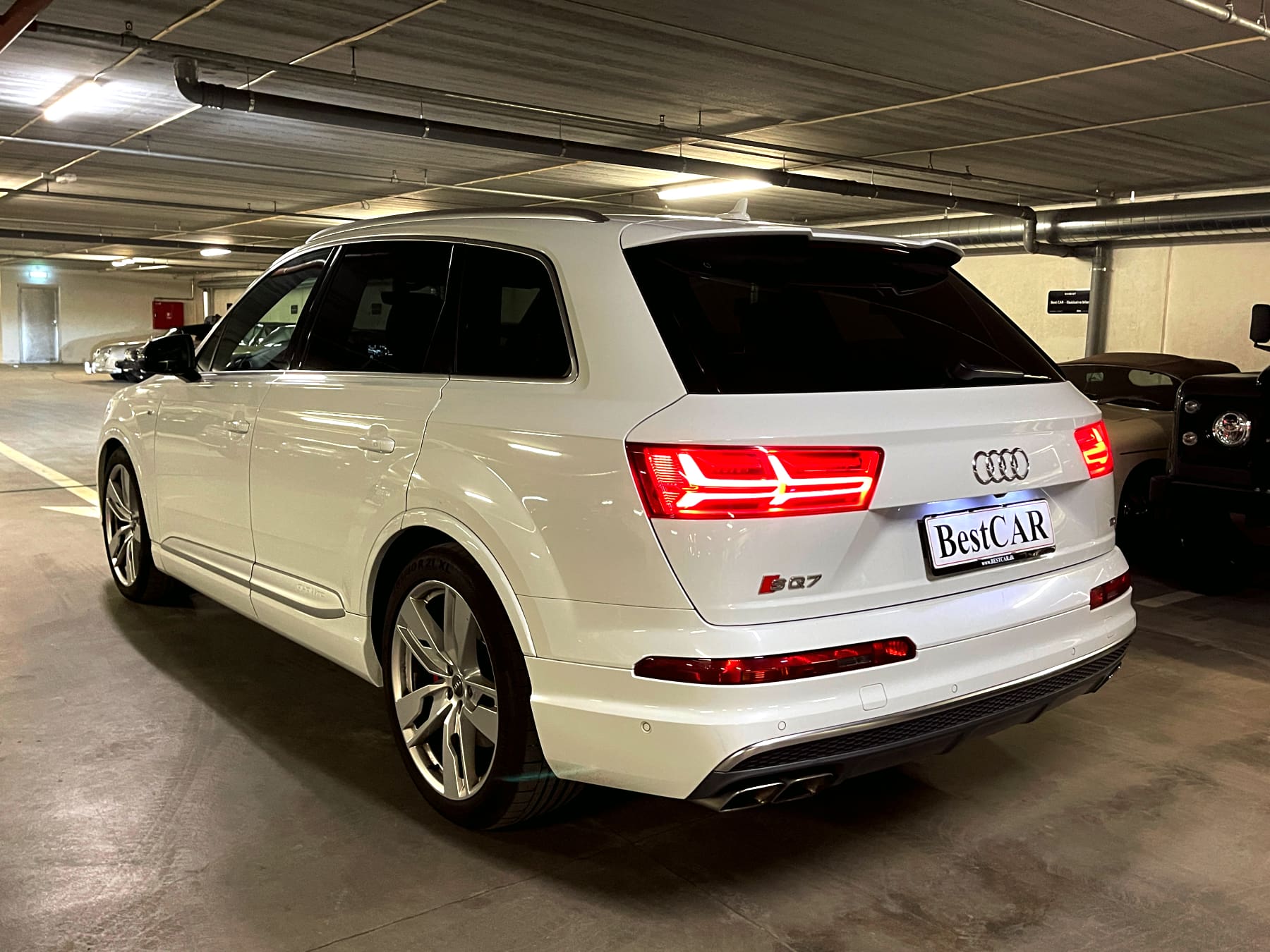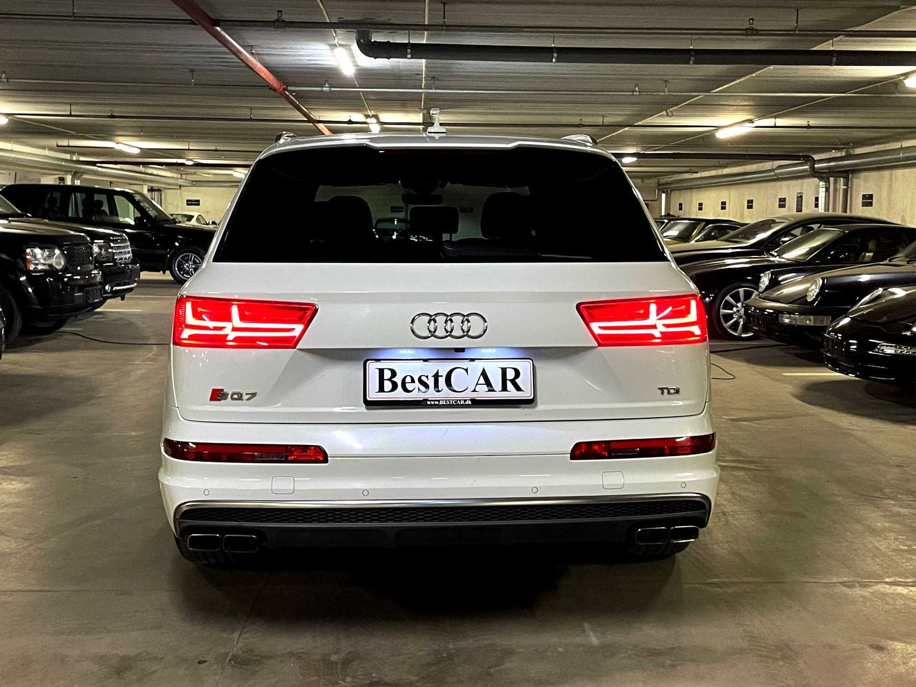 Audi SQ7 4,0 TDI Quattro Bil Type SUV År 9 KM 173.000 Brændstof Diesel Motor 4L V8 HK/NM 435/900 0-100 KM/H 4,8 sek. Topfart 250 km/t Forbrug 13,2 km/l Stock Nr. 1.493 På lager Hvidmetal med sort læder med Diamond syninger 7 sæder panorama soltag Keyless Go Head Up display fartpilot med radar 360 kamera m.m. Flexleasing i 12 mdr. - alle priser er ekskl. moms: Udbetaling: 52.000 kr. Månedlig ydelse: 4.820 kr. Restværdi: 180.000 kr. ekskl. moms og afgift Udstyr 8 trins automatgear ABS ESP firehjulstræk 7 sæder elektrisk panorama soltag i glas elektriske komfortsæder med varme/multikontour/memory varme i bagsæder Exclusive læder med Diamond syninger aktiv fartpilot med afstandsradar Head Up display Carbon interieur lister Keyless Entry/Go elektrisk svingbart træk parkeringssensor for og bag bakkamera 360 grader kamera tonede bagruder flerzone fuldautomatisk klimaanlæg elektrisk bagklap motor/kabinevarmer (fyr) multifunktionsrat i læder radio/media/bluetooth interface DAB tuner BOSE soundsystem navigationssystem justerbar luftaffjedring med køreprogrammer sporhold-/dødvinkelassistent Virtual Cockpit digitale instrumenter m.m. KONTAKT BestCAR FOR TILBUD
