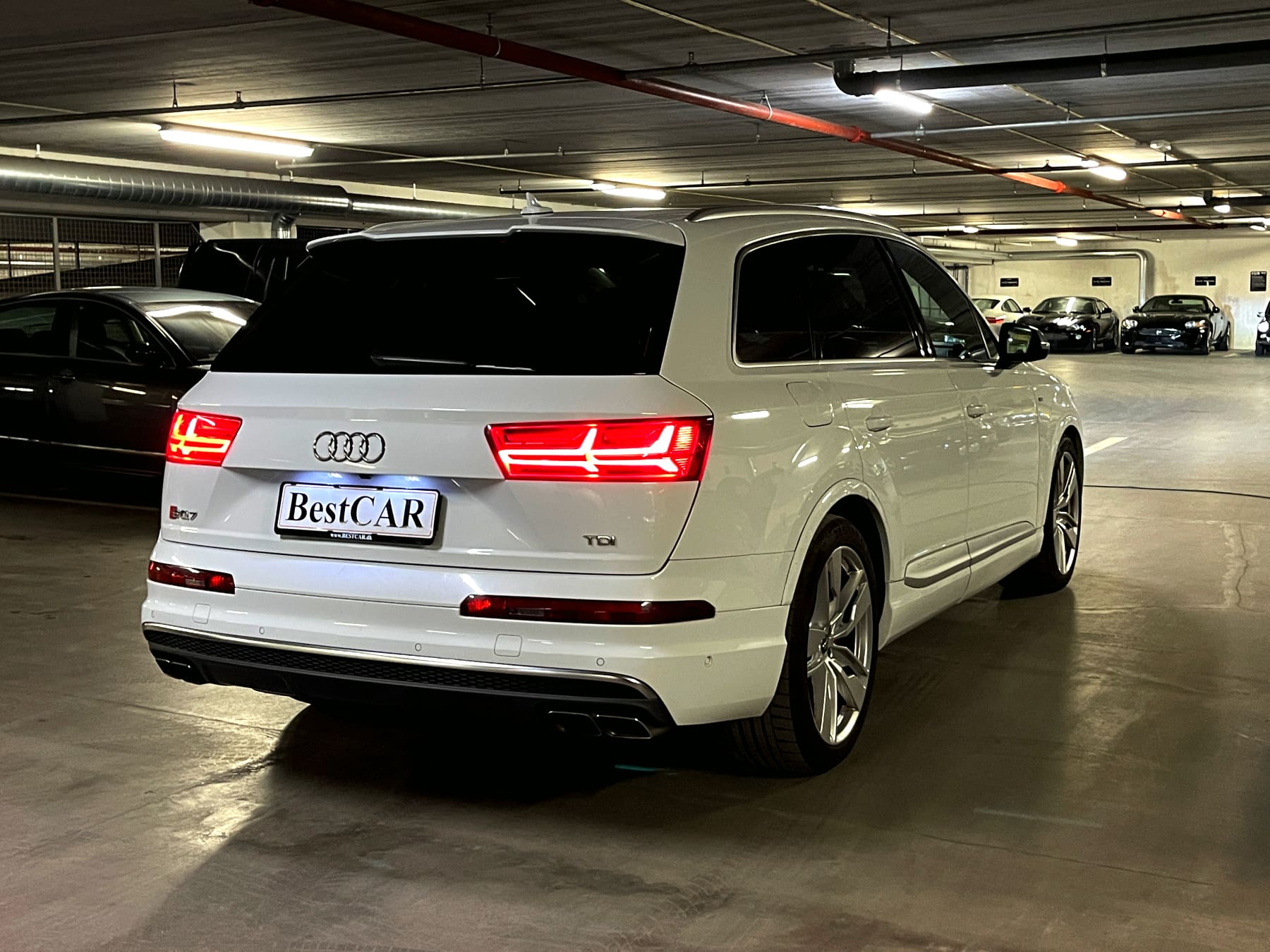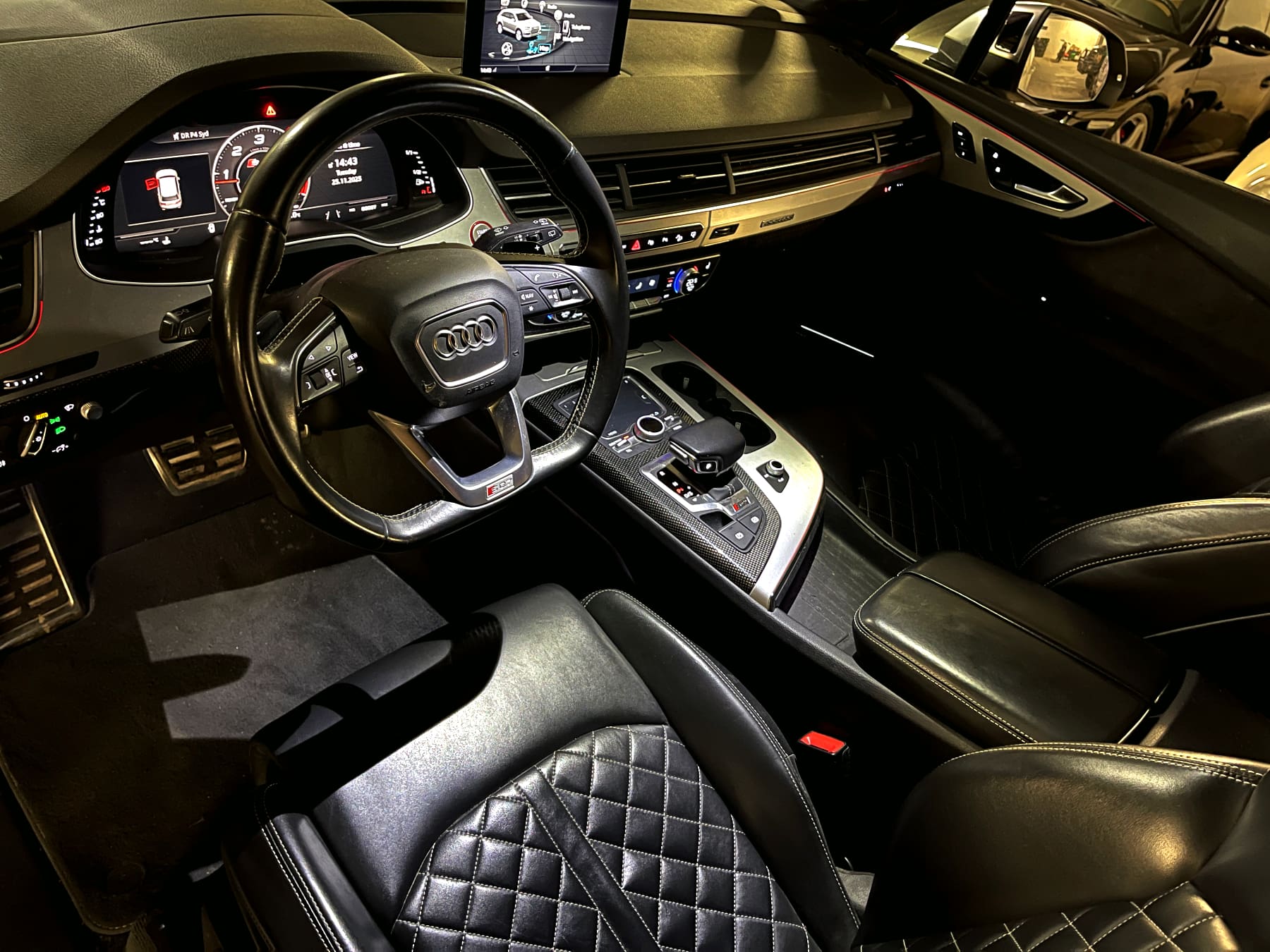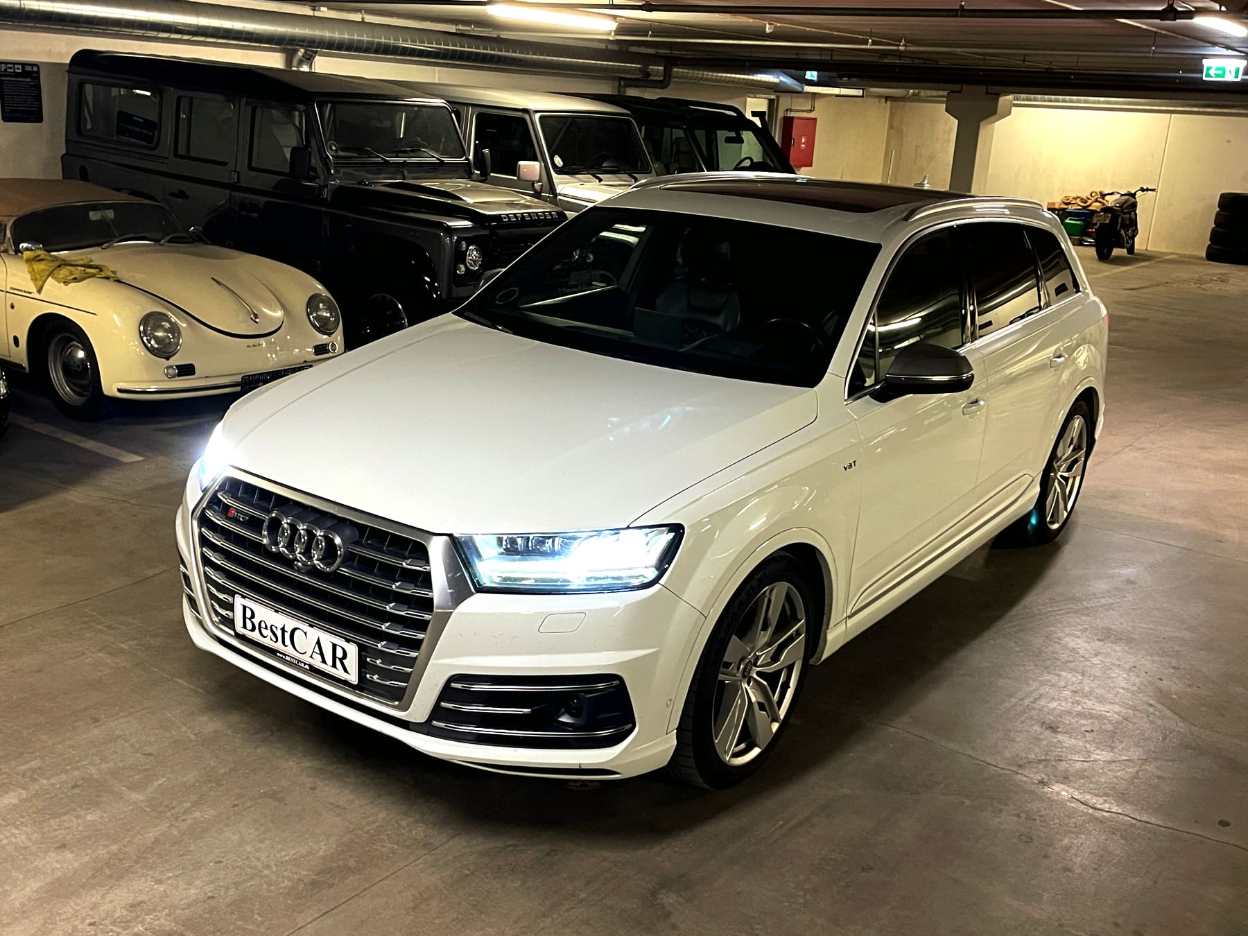 Audi SQ7 4,0 TDI Quattro Bil Type SUV År 9 KM 173.000 Brændstof Diesel Motor 4L V8 HK/NM 435/900 0-100 KM/H 4,8 sek. Topfart 250 km/t Forbrug 13,2 km/l Stock Nr. 1.493 På lager Hvidmetal med sort læder med Diamond syninger 7 sæder panorama soltag Keyless Go Head Up display fartpilot med radar 360 kamera m.m. Flexleasing i 12 mdr. - alle priser er ekskl. moms: Udbetaling: 52.000 kr. Månedlig ydelse: 4.820 kr. Restværdi: 180.000 kr. ekskl. moms og afgift Udstyr 8 trins automatgear ABS ESP firehjulstræk 7 sæder elektrisk panorama soltag i glas elektriske komfortsæder med varme/multikontour/memory varme i bagsæder Exclusive læder med Diamond syninger aktiv fartpilot med afstandsradar Head Up display Carbon interieur lister Keyless Entry/Go elektrisk svingbart træk parkeringssensor for og bag bakkamera 360 grader kamera tonede bagruder flerzone fuldautomatisk klimaanlæg elektrisk bagklap motor/kabinevarmer (fyr) multifunktionsrat i læder radio/media/bluetooth interface DAB tuner BOSE soundsystem navigationssystem justerbar luftaffjedring med køreprogrammer sporhold-/dødvinkelassistent Virtual Cockpit digitale instrumenter m.m. KONTAKT BestCAR FOR TILBUD
